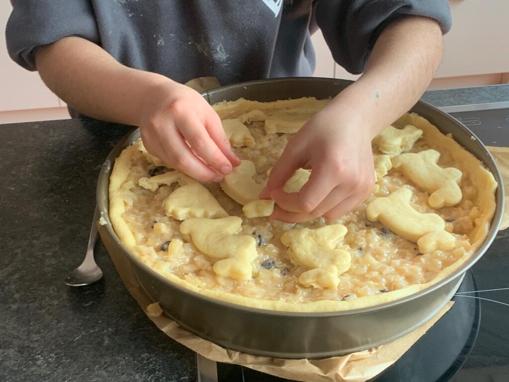 Unter Anleitung der Organisatorin und Betreuerin Isabelle Link backten 16 Kinder und ein Betreuer-Team insgesamt 14 Ungarische gedeckte Apfelkuchen.